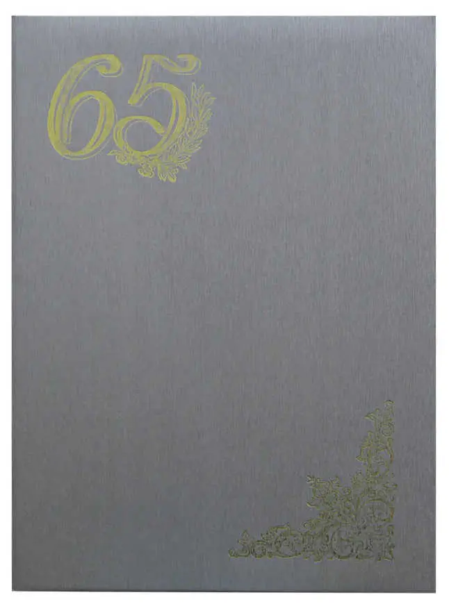 Папка адресная дизайнерские материалы А4 (пухлая) "65 лет" шелк серебряный