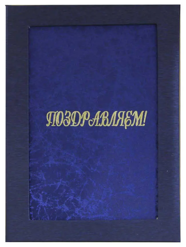 Папка адресная балакрон А4 (пухлая) с рамочкой под фото "Поздравляем" шелк синий