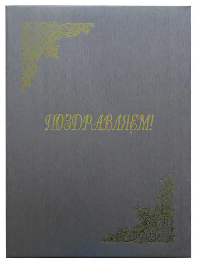 Папка адресная дизайнерские материалы А4 (пухлая) "Поздравляем" шелк серебряный