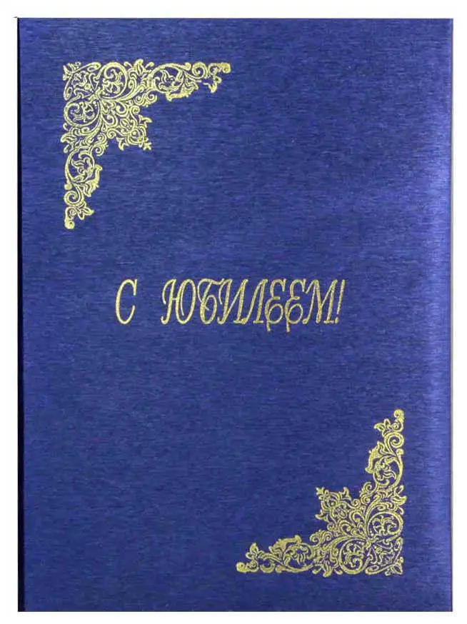 Папка адресная дизайнерские материалы А4 (пухлая) "С Юбилеем" шелк синий