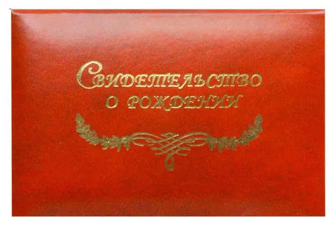 Папка с файлом бумвинил А4 (пухлая) "Свидетельство о рождении с виньеткой" красная с разводами