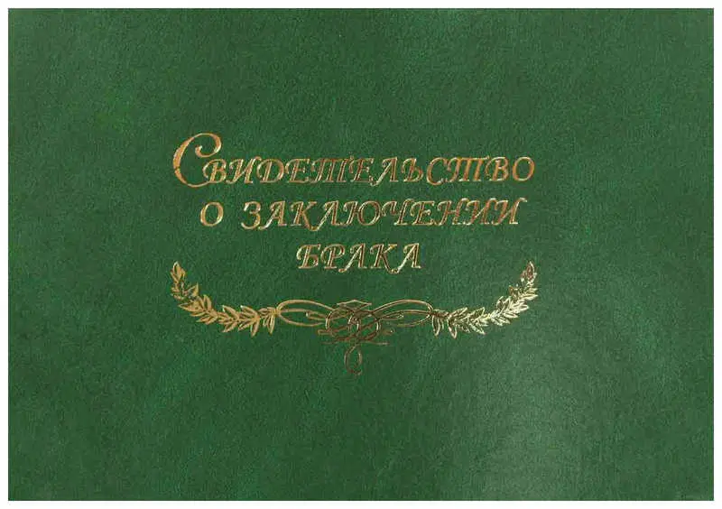 Папка с файлом бумвинил А5 (жесткая) "Свидетельство о заключении брака с виньеткой" зеленая с разводами