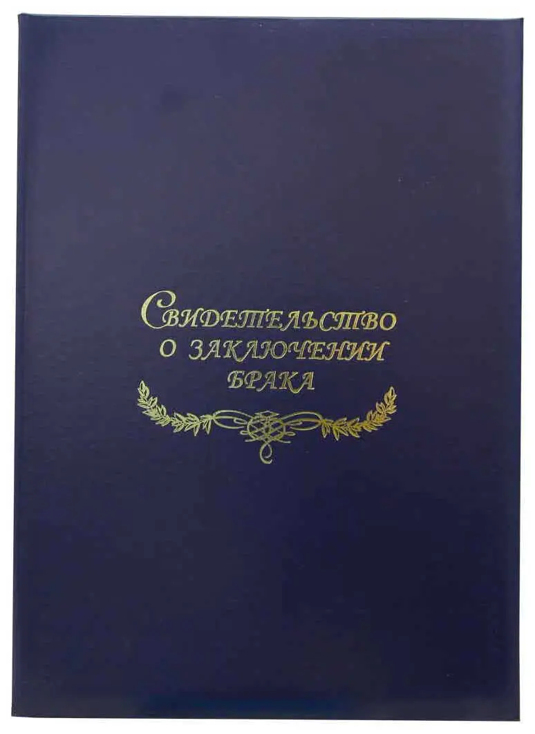 Папка с файлом бумвинил А4 (жесткая) "Свидетельство о заключении брака с виньеткой" синяя