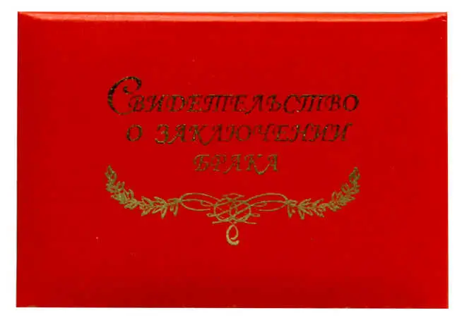 Папка с файлом бумвинил А4 (жесткая) "Свидетельство о заключении брака с виньеткой" красная с разводами