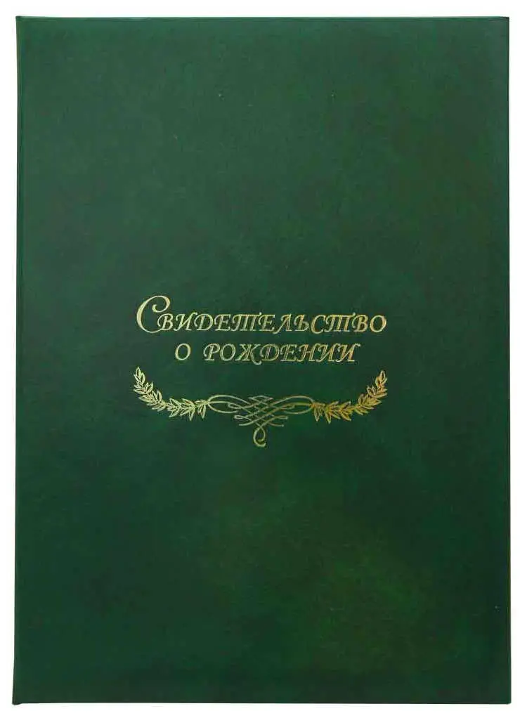 Папка с файлом бумвинил А4 (пухлая) "Свидетельство о рождении с виньеткой" зеленая