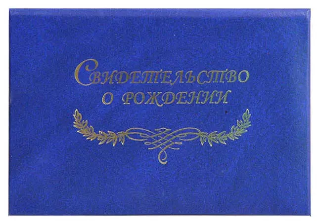 Папка с файлом бумвинил А4 (пухлая) "Свидетельство о рождении с виньеткой" синяя