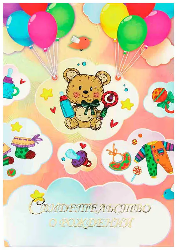 Папка с файлом ламинированная А4 (жесткая) "Свидетельство о рождении" Игрушки с сердечком