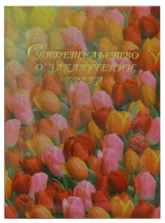 Папка с файлом ламинированная А5 (жесткая) "Свидетельство о заключении брака" Тюльпаны