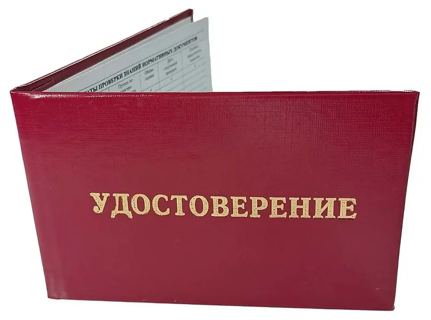 Удостоверение о проверке знаний правил работы в электроустановок, жесткое, 95*65 мм, бумвинил бордо