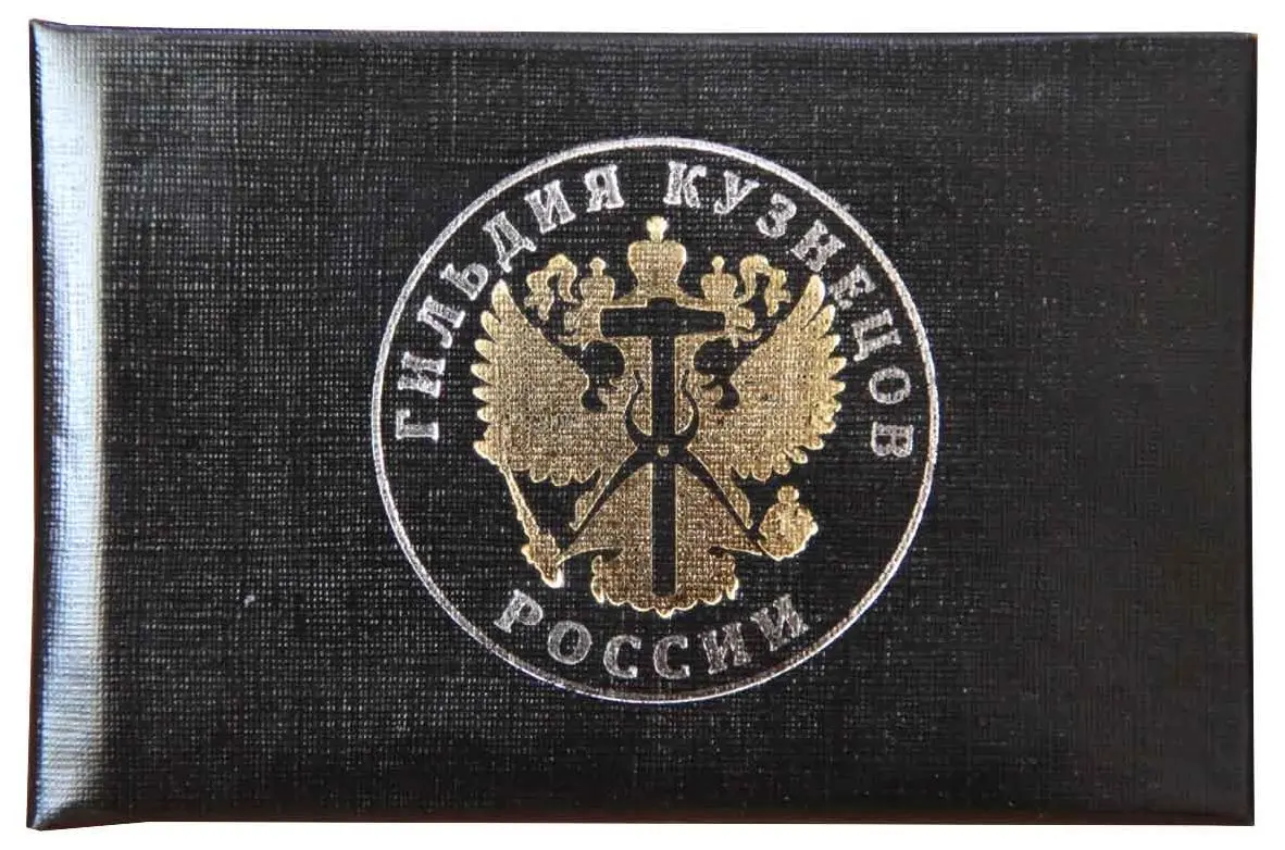 Удостоверение 95*65 мм (мягкое) бумвинил черный, тиснение 2-х цветное "Гильдия кузнецов России", без вклейки