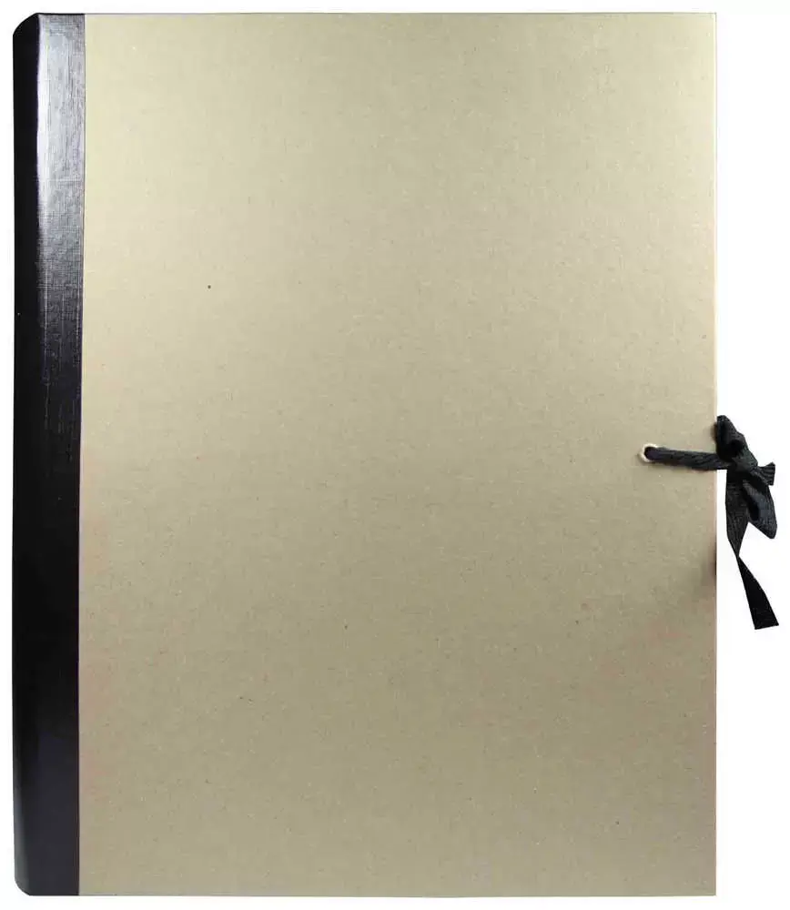 Архивная папка А4, 100 мм, крафт/бумвинил, с цельнокроенным гребешком, мягкие клапана, 4 завязки, черная