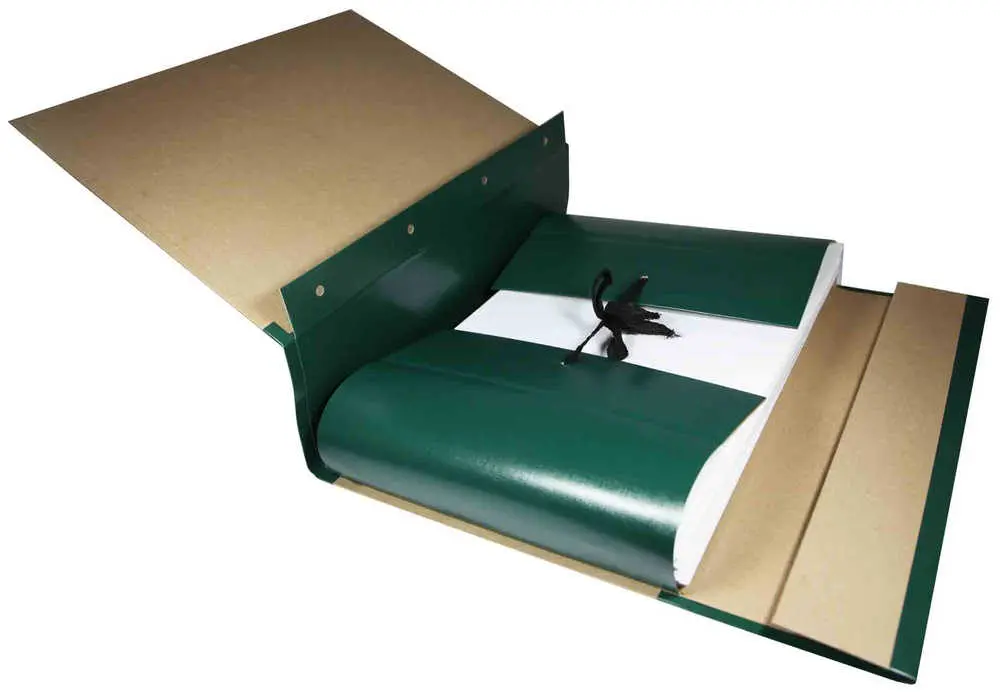 Архивная папка формата А4 выполнена из плотного картона, обклеенного крафт-бумагой. Корешок мягкий, шириной 100 мм, выполнен из зеленого бумвинила. Внутренние гребешки с 4 отверстиями из плотного картона и бумвинила того же цвета, позволяют подшивать документы с помощью шнура до 950 листов. Внутри папка обклеена крафт-бумагой, есть мягкие клапана. В закрытом виде папка фиксируется с помощью 4 завязок. Размер изделия в собранном виде 230х310х100 мм. Размер изделия в сложенном виде 330х310 мм. Поставка производиться в сложенном виде. Упаковка в гофрокороб по 25 шт. Вес упаковки 7,65 кг. Размер упаковки: 360х320х180 мм