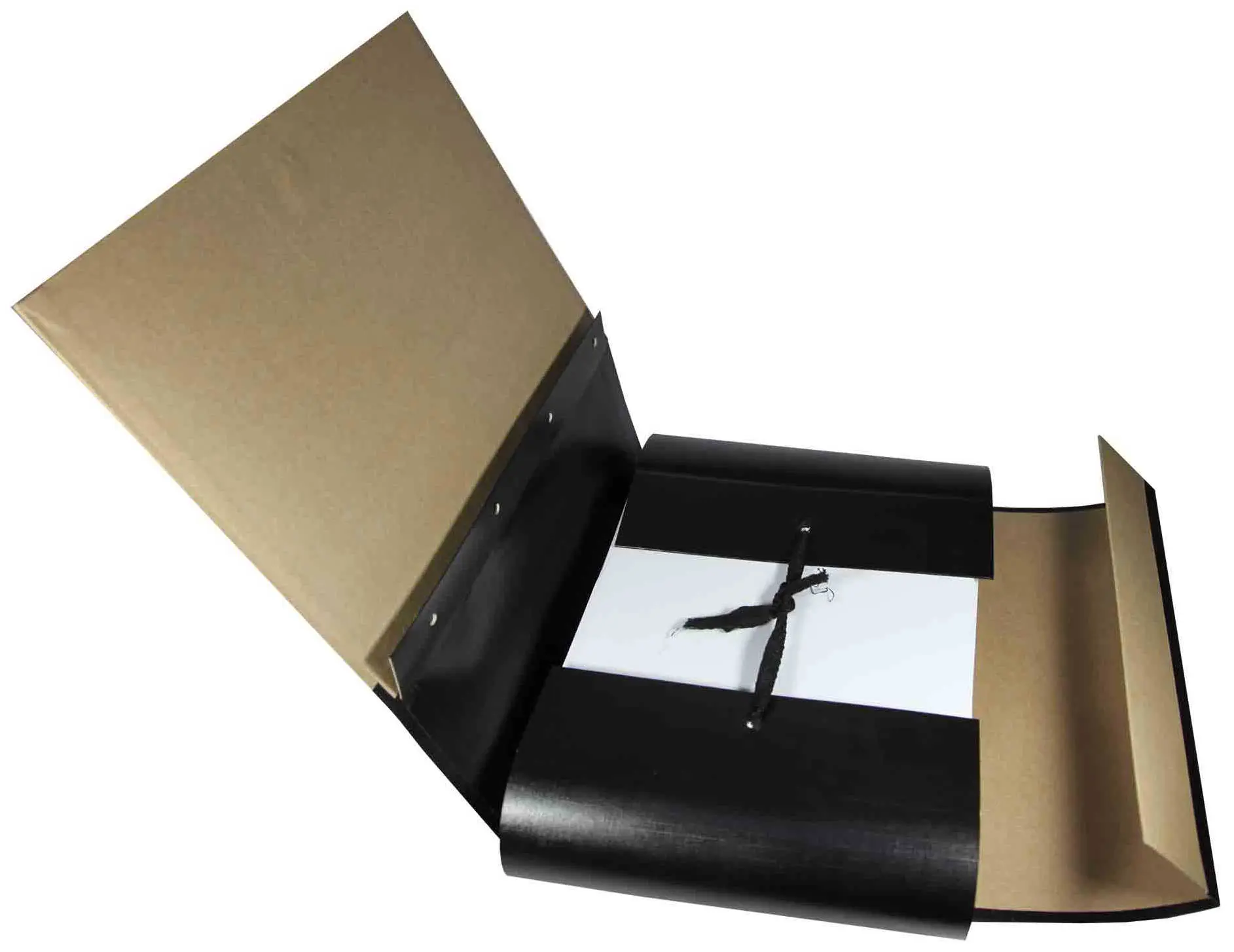 Архивная папка А4, 120 мм, крафт/бумвинил, с цельнокроенным гребешком, мягкие клапана, 4 завязки, черная