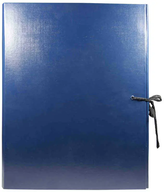 Архивная папка жесткая. Выполнена из плотного переплетного картона, обклеенного бумвинилом синего цвета, с корешками 50 мм и тремя клапанами. Сторонки папки выклеены белой бумагой. Папка вмещает до 500 листов формата А4. Папка завязывается на 2 шнурка.
