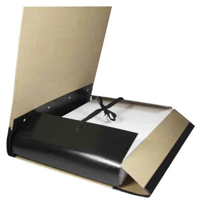 Архивная папка формата А4 выполнена из плотного картона, обклеенного крафт-бумагой. Корешок мягкий, шириной 50 мм, выполнен из черного бумвинила. Внутренние гребешки с 4 отверстиями из плотного картона и бумвинила того же цвета, позволяют подшивать документы с помощью шнура до 450 листов. Внутри папка обклеена крафт-бумагой, есть мягкие клапана. В закрытом виде папка фиксируется с помощью 4 завязок. Размер изделия в собранном виде 230х310х50 мм. Размер изделия в сложенном виде 280х310 мм. Поставка производиться в сложенном виде. Упаковка в гофрокороб по 25 шт. Вес упаковки 6,6 кг. Размер упаковки: 300х320х180 мм