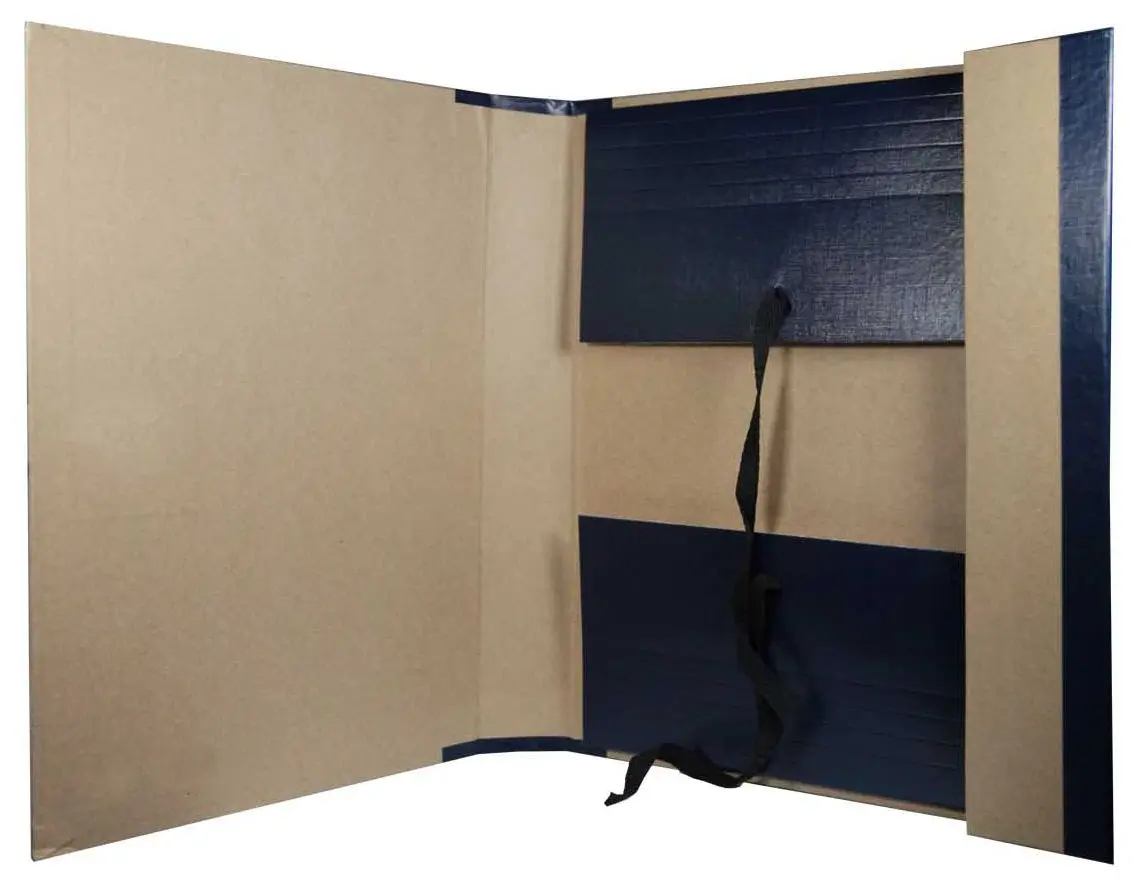 Архивная папка формата А4. Изготовлена из плотного переплетного картона, с внешней стороны покрыт бумвинилом синего цвета. Внутри папка обклеена крафт-бумагой плотностью 80гр/м2, также имеются мягкие клапана. В закрытом виде фиксируется с помощью 4 завязок. Папка вмещает 500 листов. Позволяет хранить документы как в вертикальном, так и в горизонтальном положении. Размер изделия в собранном виде - 230х310х50 мм. Размер изделия в сложенном виде - 280х310 мм. Поставка производится в сложенном виде. Упаковка в гофрокороб по 25шт. Вес упаковки 5,72 кг. Размер упаковки: 300х320х180 мм.