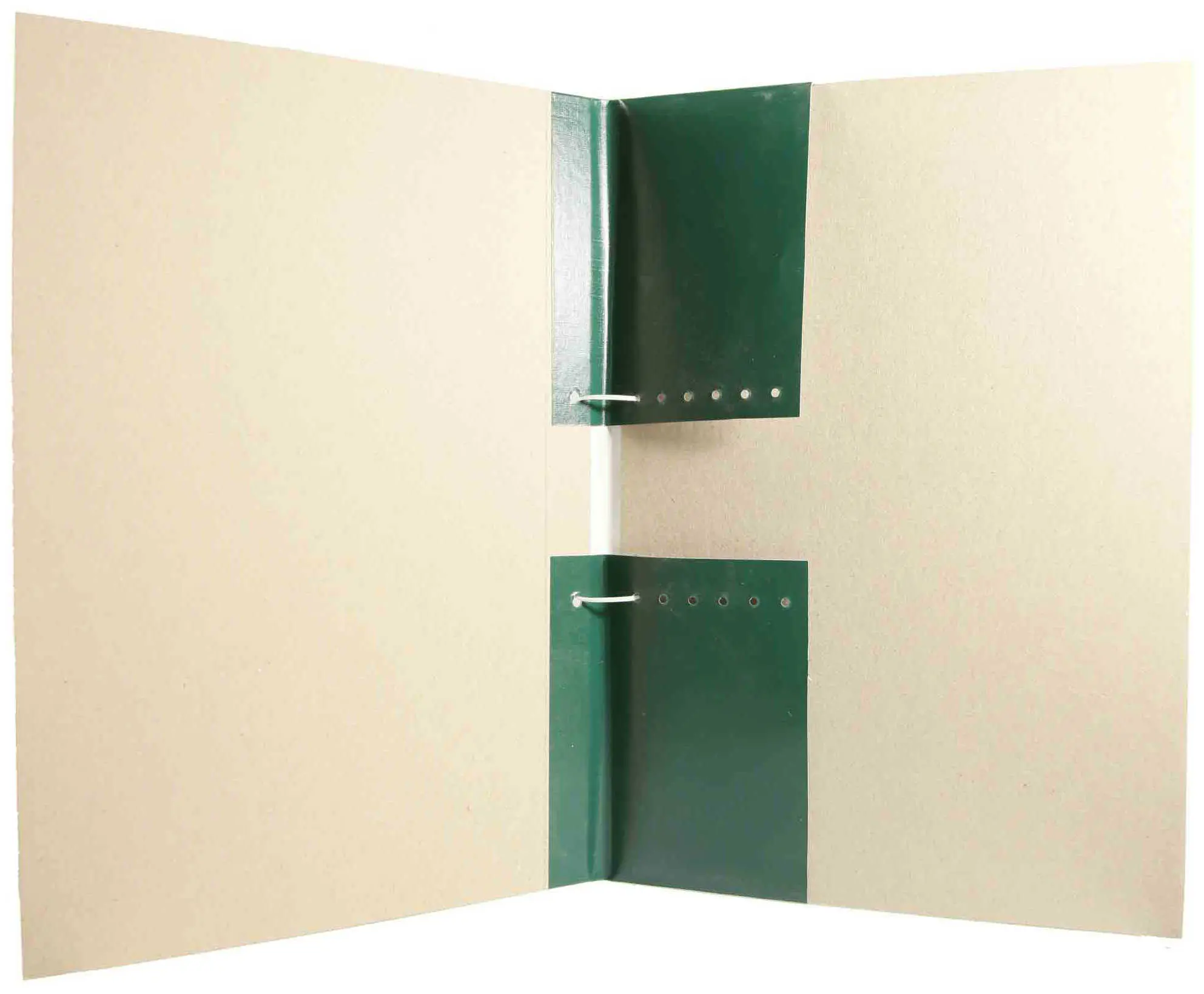 Архивная папка из плотного переплетного картона с регулируемым корешком, изготовленным из зеленого бумвинила. Корешок имеет несколько отверстий, что позволяет изменять толщину корешка от 1 до 7 см. Папка вмещает от 1 до 700 листов формата А4.