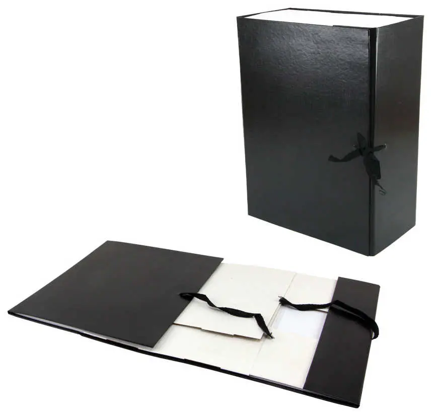 Архивный короб формата А4. Изготовлен из плотного переплетного картона, с внешней стороны