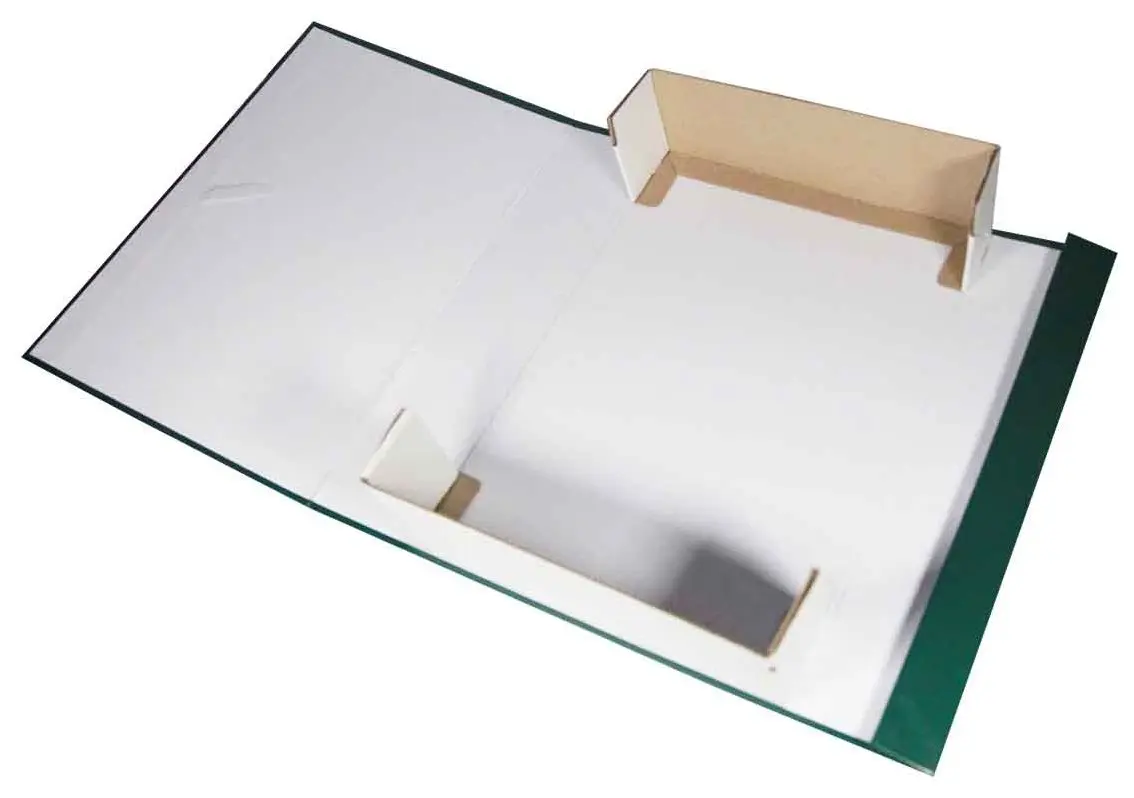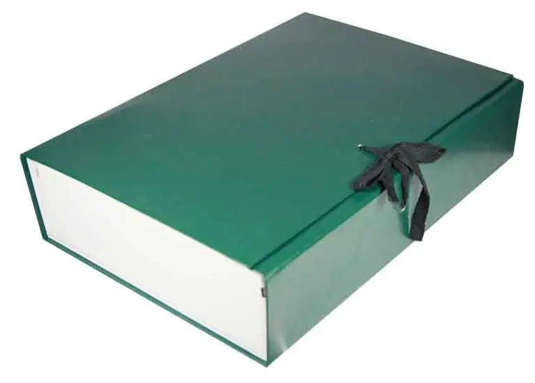 Архивный короб формат А4. Изготовлен из плотного переплетного картона, с внешней стороны покрыт бумвинилом зеленого цвета. С внутренней стороны белая бумага, имеются стойки-упоры разборные из гофрокартона. В закрытом виде фиксируется с помощью двух завязок. Короб вмещает до 700 листов формата А4. Размер изделия в собранном виде - 225х75х320 мм. Упаковка в гофрокороб по 25 шт. Вес упаковки 7,15 кг. Размер упаковки 435х345х205 мм. Поставляются в разобранном виде.