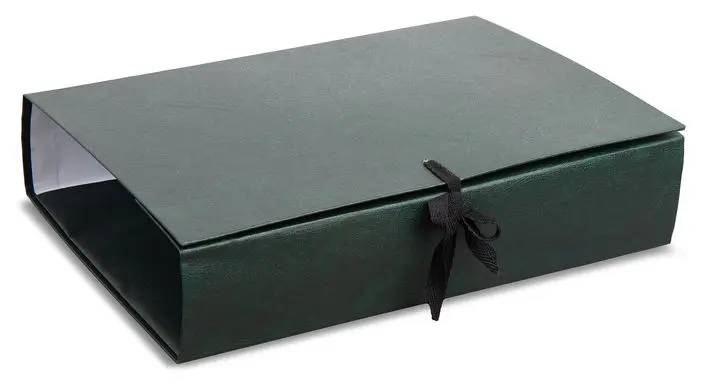 Архивный короб формата А4. Изготовлен из плотного переплетного картона, с внешней стороны покрыт бумвинилом темно-зеленого цвета. Внутри короб обклеен офсетной бумагой, также имеются мягкие клапана. В закрытом виде фиксируется с помощью двух хлопчатобумажных завязок. Короб вмещает до 700 листов стандартной плотности, ширина корешка — 70 мм. Позволяет надежно хранить документы как в вертикальном, так и в горизонтальном положении. Размер изделия в собранном виде— 245×75×330 мм. Размер изделия в сложенном виде — 230×70×320 мм. Упаковка в гофрокороб по 25 шт. Вес упаковки 8,4 кг. Размер упаковки 435×345×205 мм. Поставляется в разобранном виде