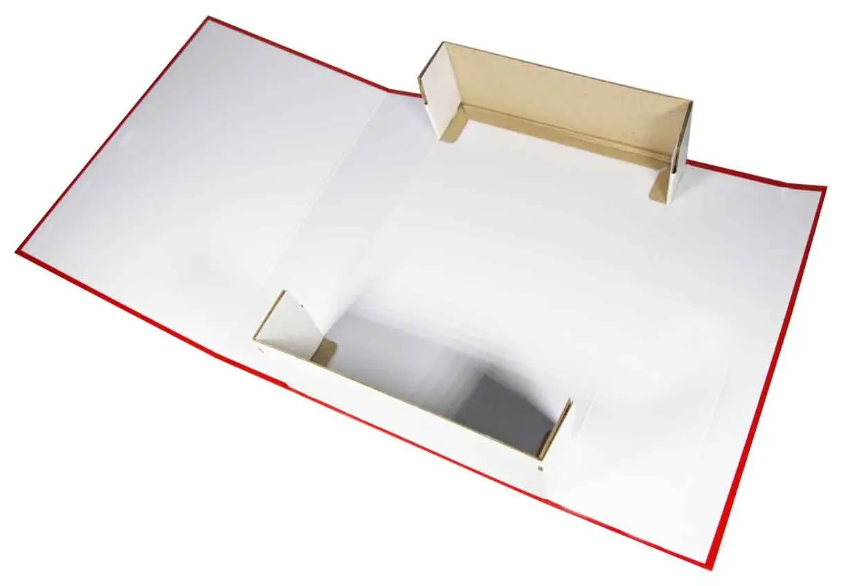 Архивный короб формат А4. Изготовлен из плотного переплетного картона, с внешней стороны покрыт бумвинилом красного цвета. С внутренней стороны белая бумага, имеются стойки-упоры разборные из гофрокартона. В закрытом виде фиксируется с помощью двух завязок. Короб вмещает до 800 листов формата А4. Размер изделия в собранном виде - 225х85х320 мм. Упаковка в гофрокороб по 25 шт. Вес упаковки 7,3 кг. Размер упаковки 435х345х205 мм. Поставляются в разобранном виде.