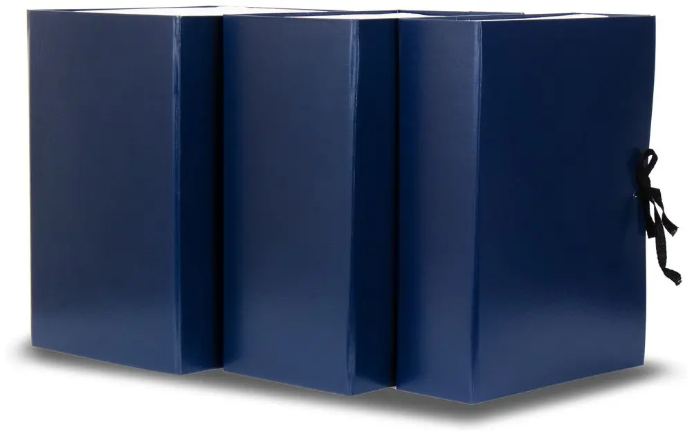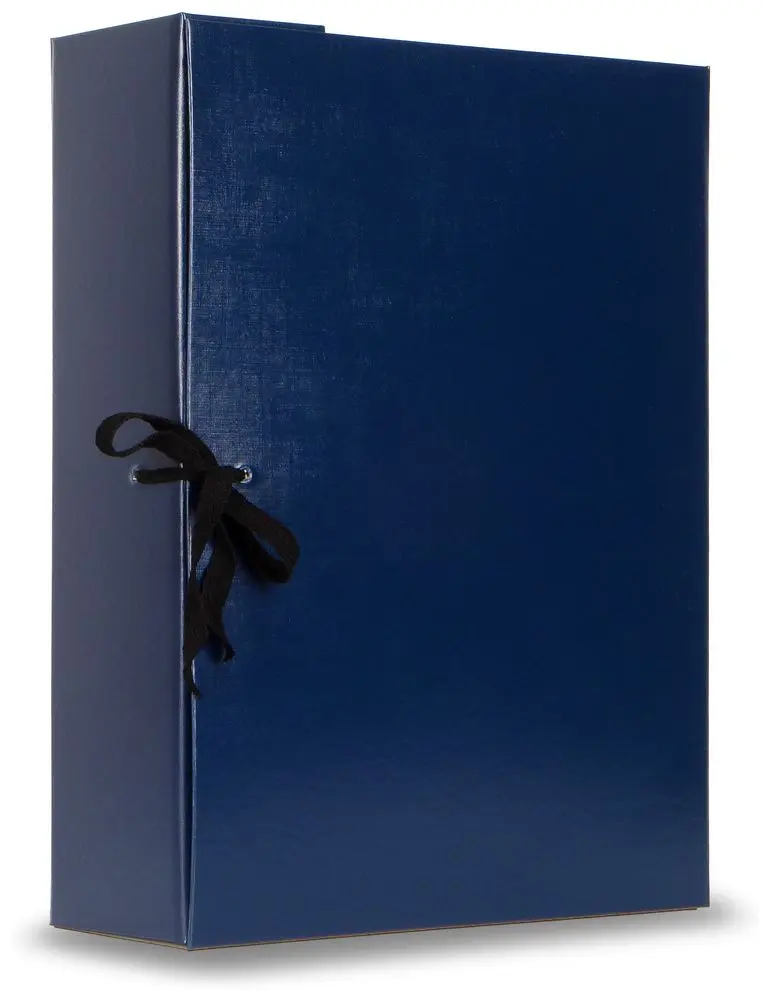 Архивный короб формата А4. Изготовлен из плотного переплетного картона, с внешней стороны