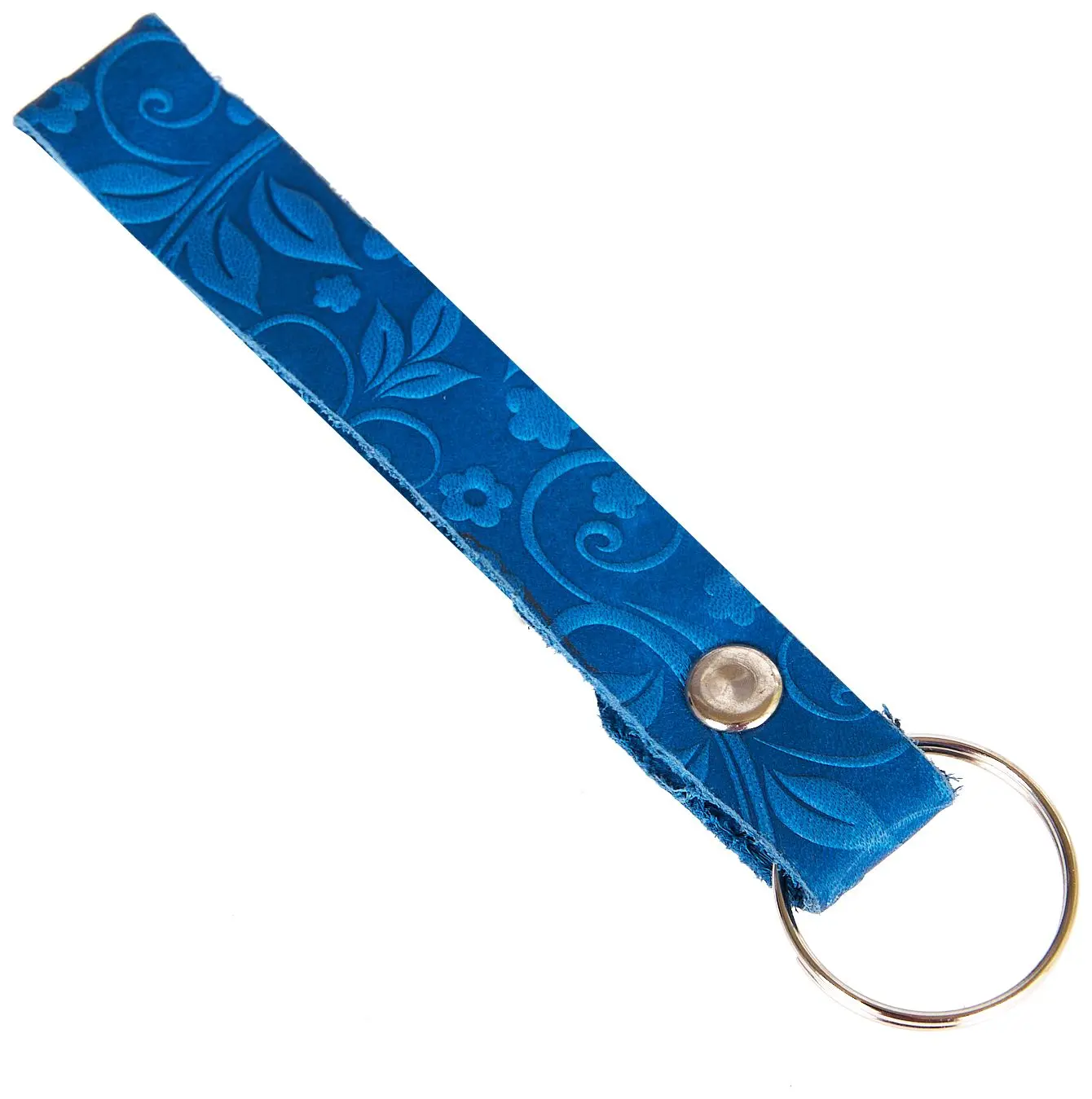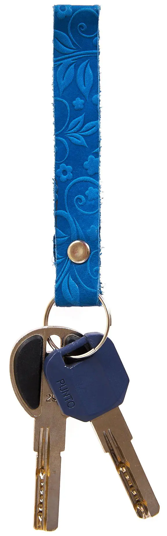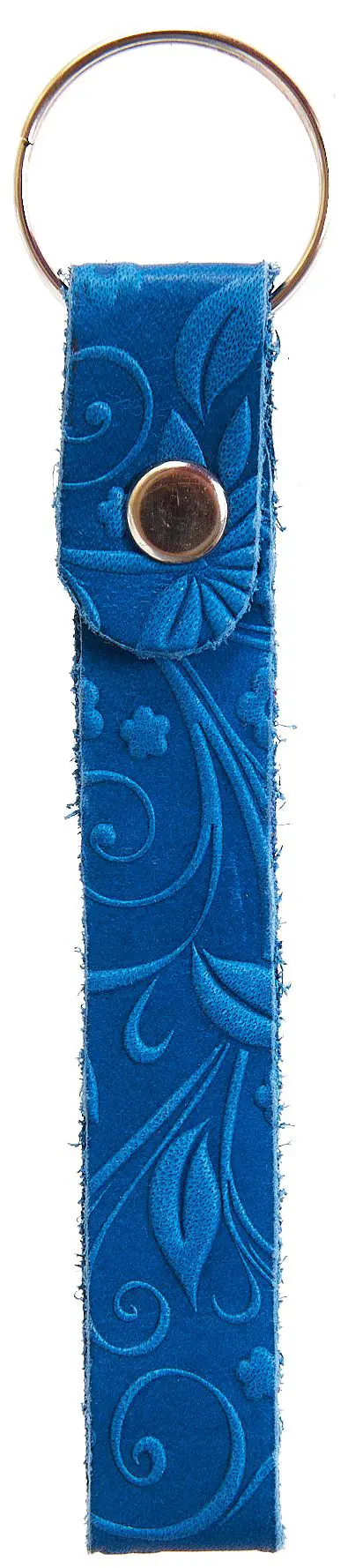 Брелок для ключей из натуральной кожи, голубой, тиснение по коже конгрев "Флаверс"