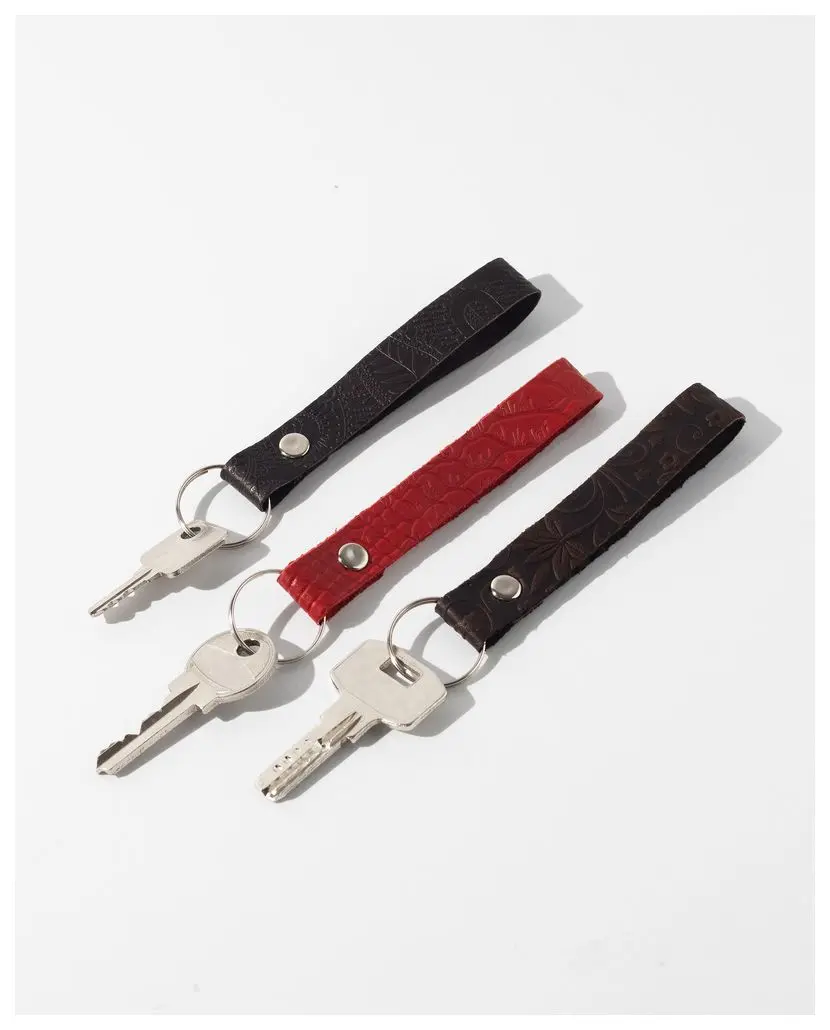Брелоки сделаны из качественной натуральной кожи в виде петельки с блинтовым тиснением.