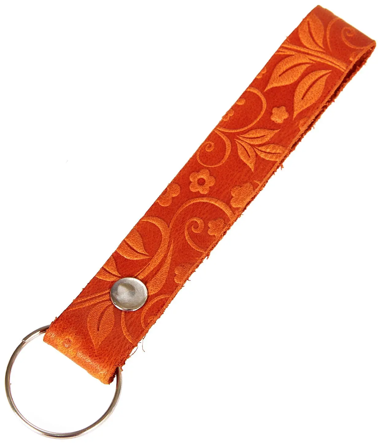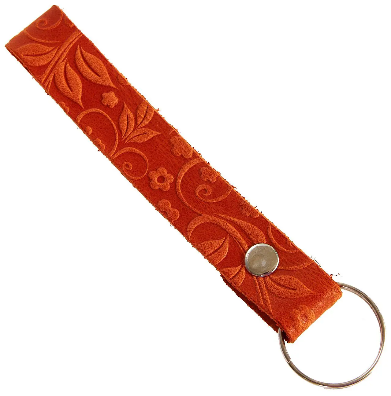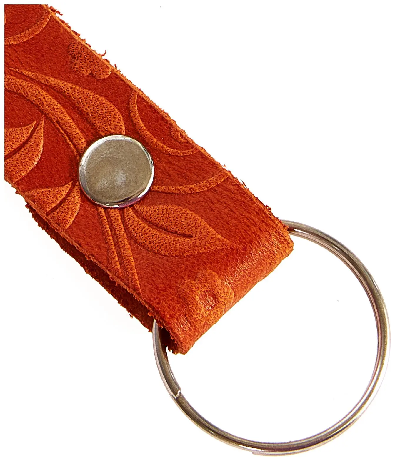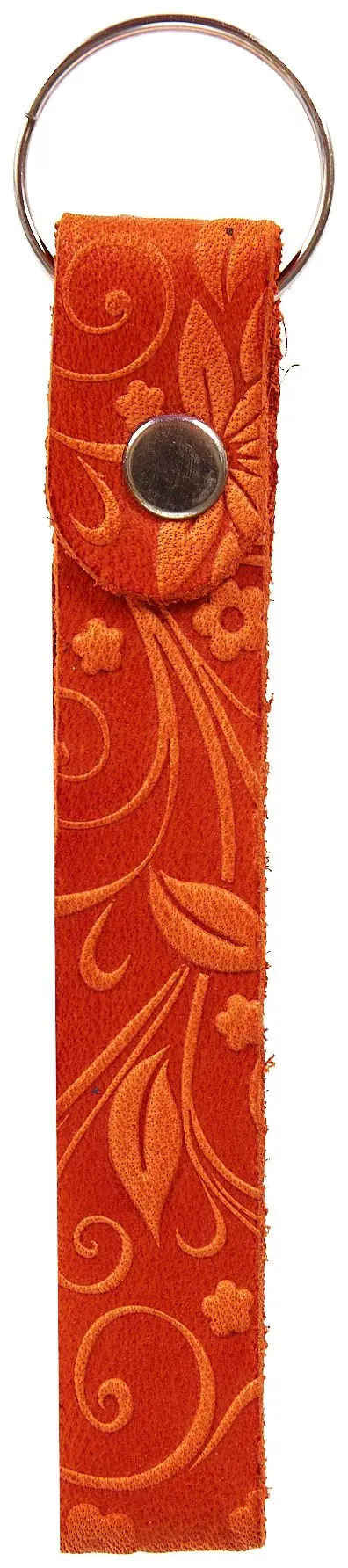 Брелок для ключей из натуральной кожи, рыжий, тиснение по коже конгрев "Флаверс"