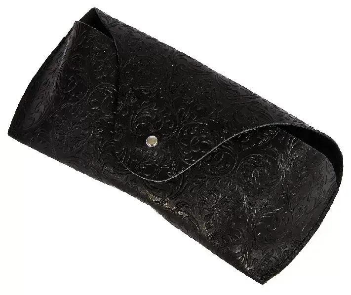 Чехол для очков из натуральной кожи 15,5x6 см, толщина 4 см, черный, тиснение по коже конгрев "Адажио"