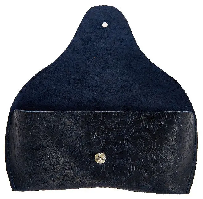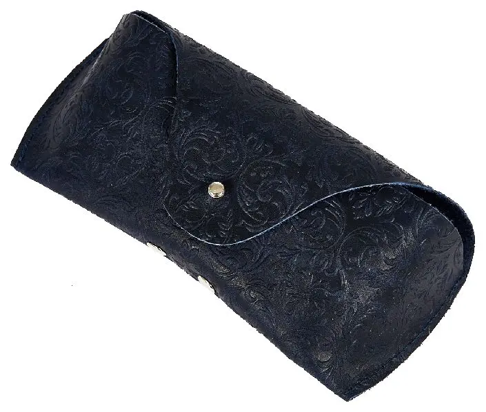Чехол для очков из натуральной кожи 15,5x6 см, толщина 4 см, синий, тиснение по коже конгрев "Адажио"