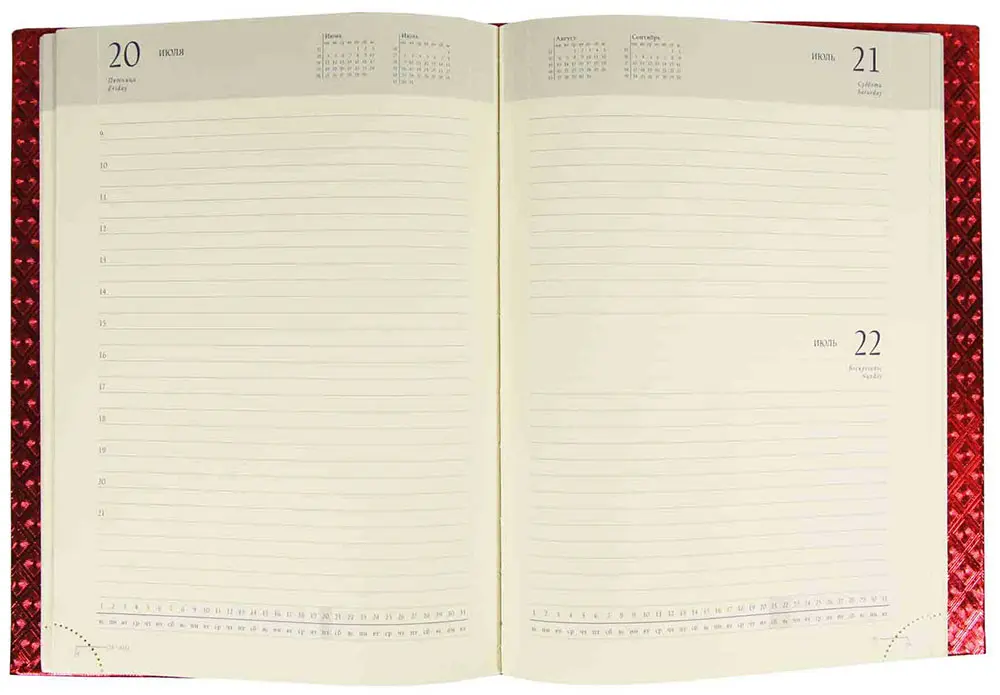 - Внутренний блок: Датированный, 352 листов, белый офсет, обрез золотой