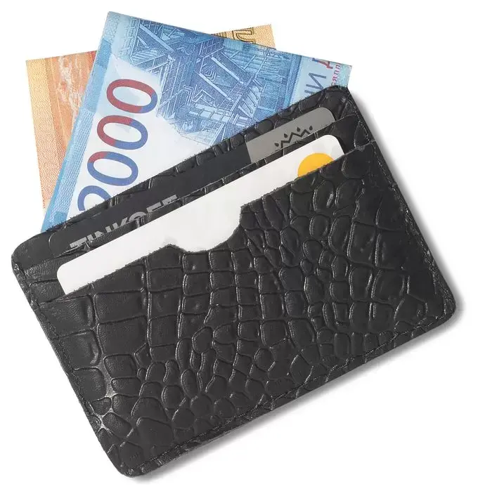Картхолдер "Бетховен" из натуральной кожи, черный, пять отделений, тиснение "Питон"