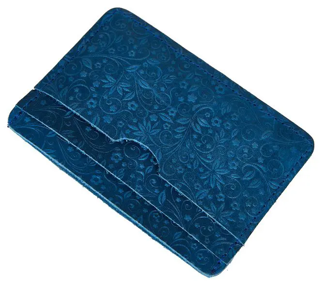 Картхолдер "Бетховен" из натуральной кожи, голубой, пять отделений, тиснение "Флаверс"