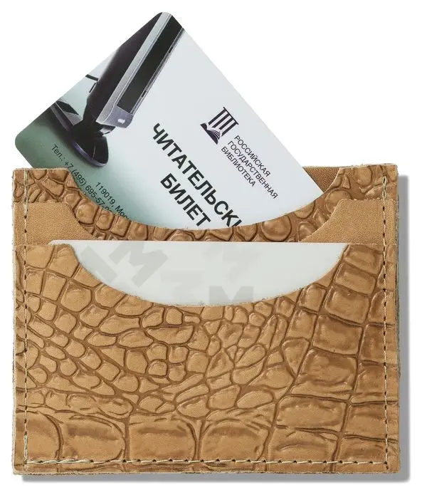 Картхолдер "Улыбка" из натуральной кожи, бежевый, тиснение "Данди"