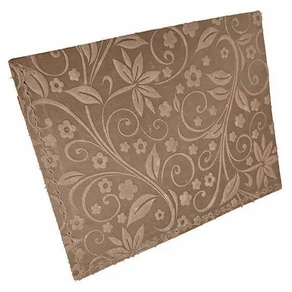 Картхолдер "Улыбка" из натуральной кожи, бежевый, тиснение "Флаверс"