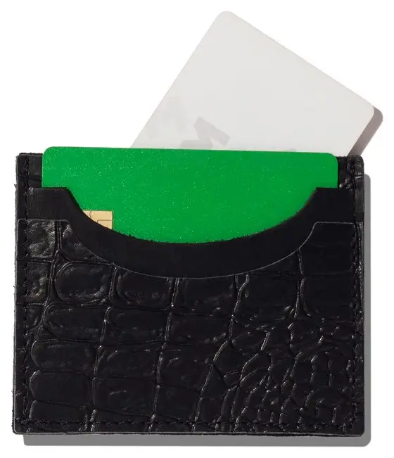 Картхолдер "Бетховен" из натуральной кожи, черный, пять отделений, тиснение "Питон"