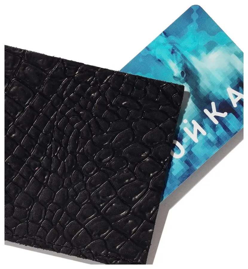 Картхолдер "Улыбка" из натуральной кожи, черный, тиснение "Данди"