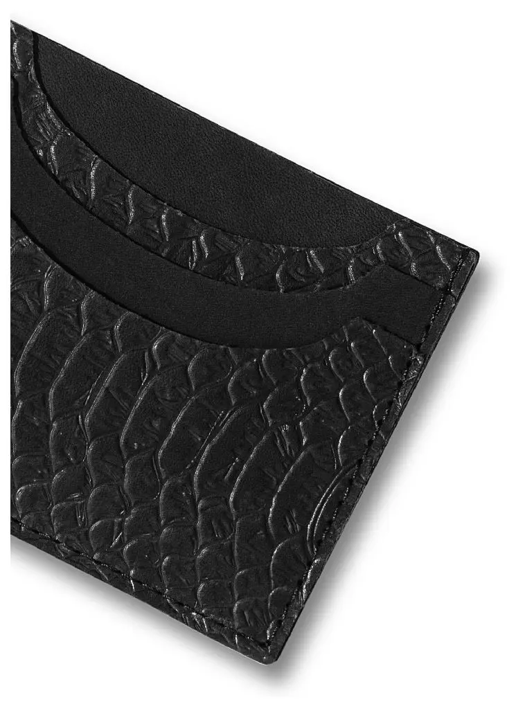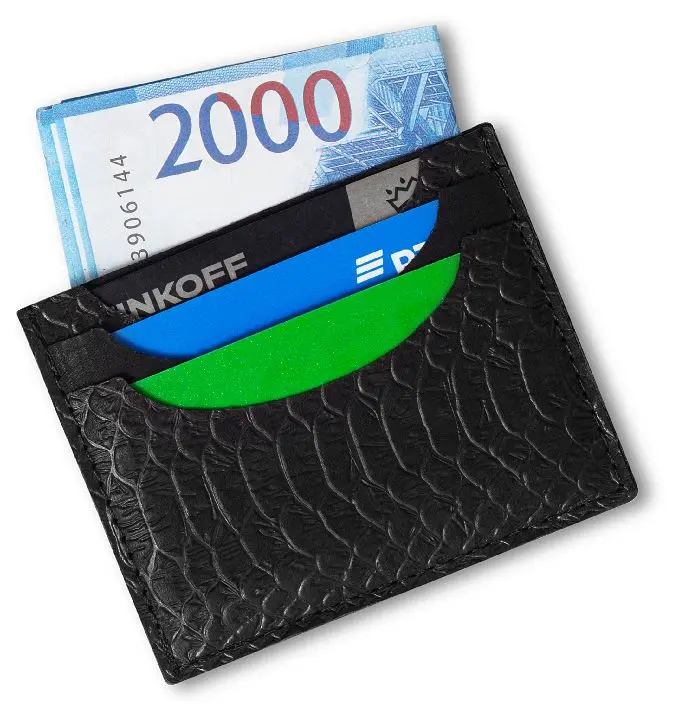 Картхолдер "Улыбка" из натуральной кожи, черный, тиснение "Питон"