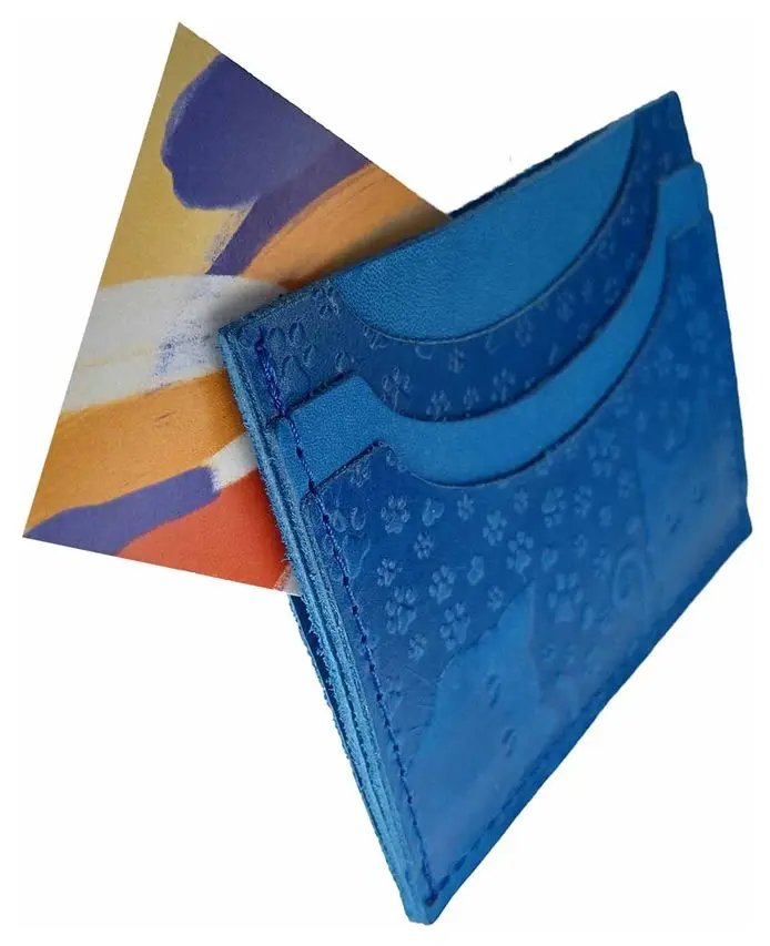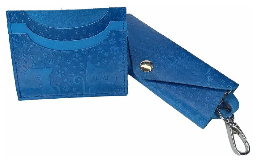 Картхолдер "Улыбка" из натуральной кожи, голубой, тиснение "Котики"