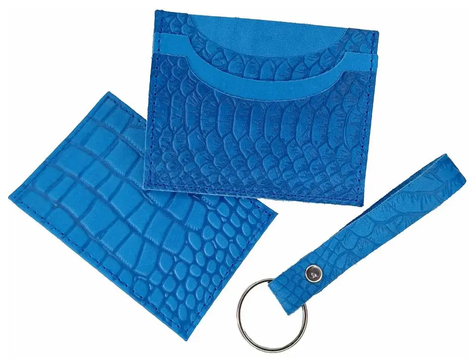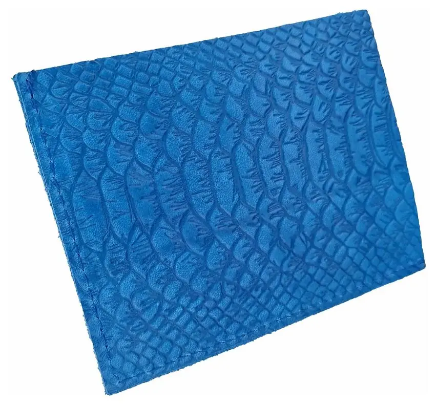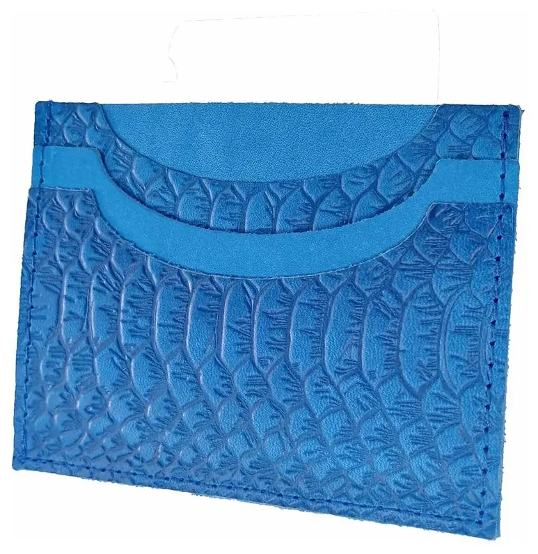 Картхолдер "Улыбка" из натуральной кожи, голубой, тиснение "Питон"