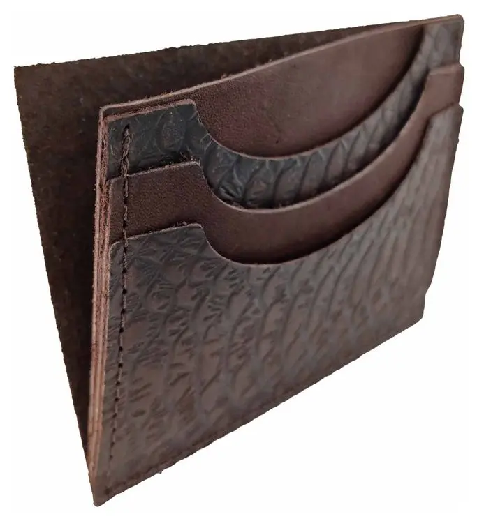 Картхолдер "Улыбка" из натуральной кожи, коричневый, тиснение "Питон"