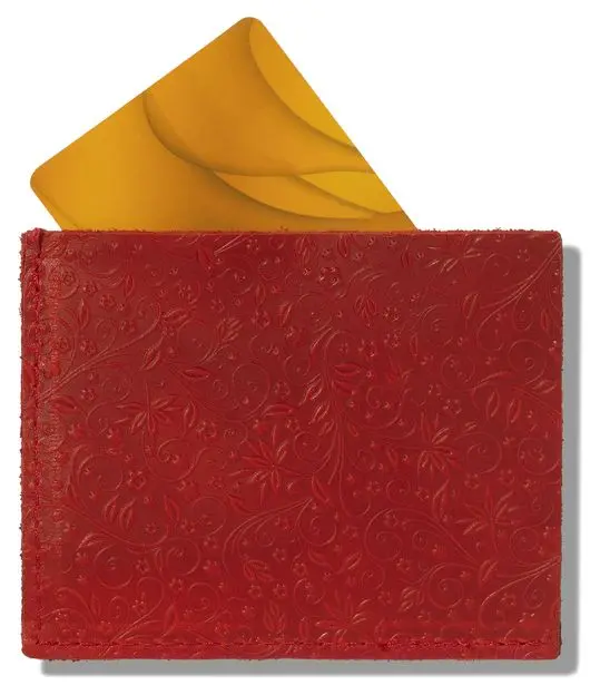 Картхолдер "Улыбка" из натуральной кожи, красный, тиснение "Флаверс"