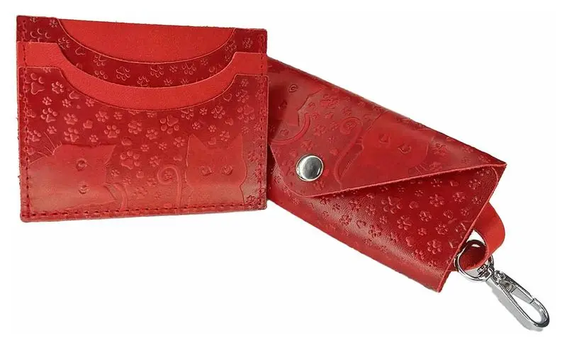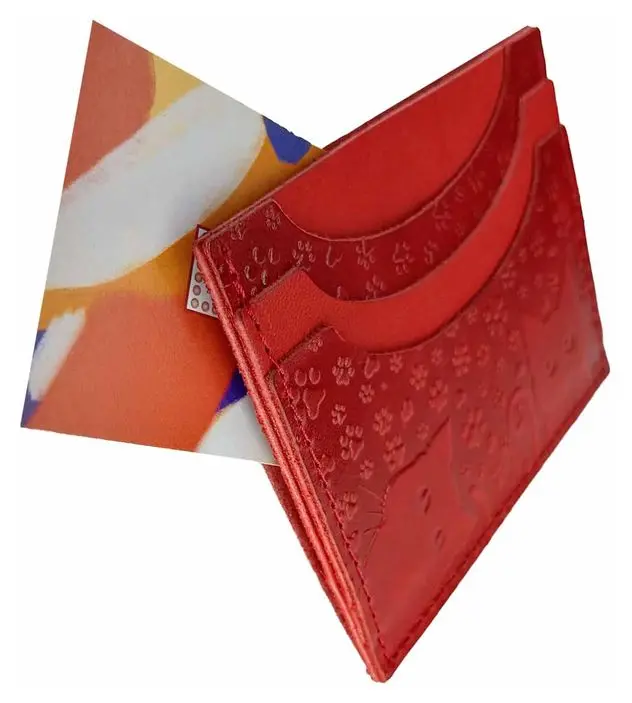 Картхолдер "Улыбка" из натуральной кожи, красный, тиснение "Котики"