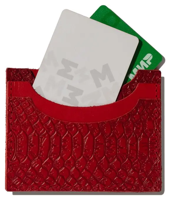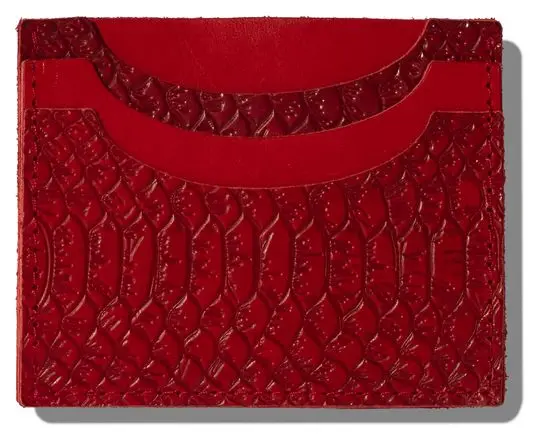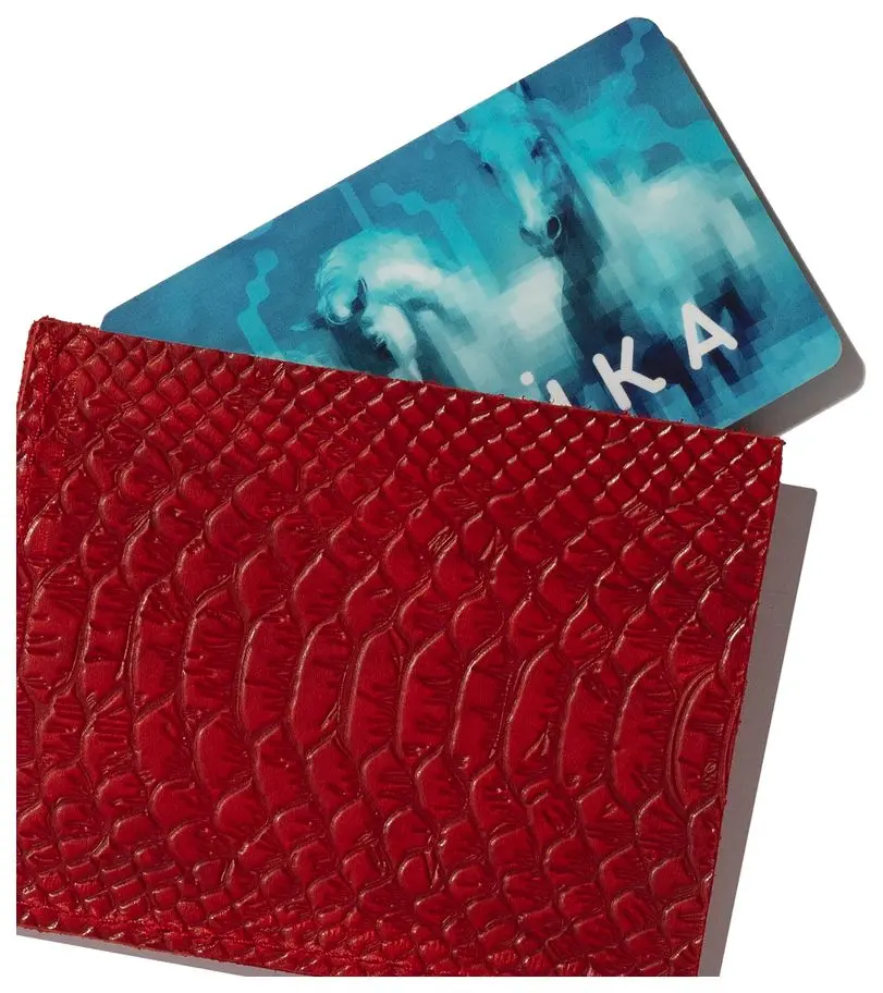 Картхолдер "Улыбка" из натуральной кожи, красный, тиснение "Питон"
