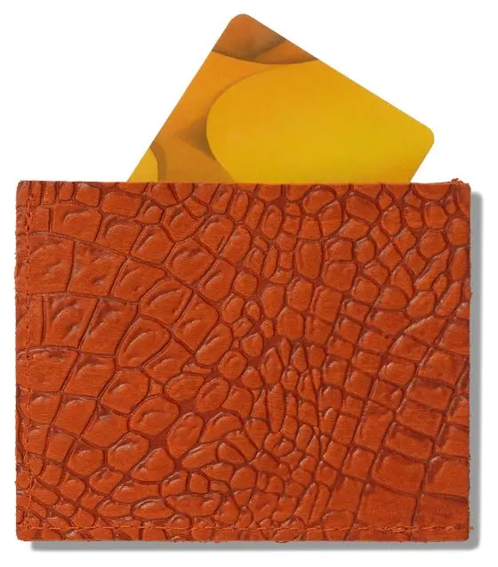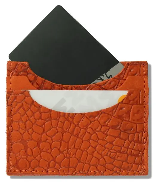 Картхолдер "Улыбка" из натуральной кожи, рыжий, тиснение "Данди"