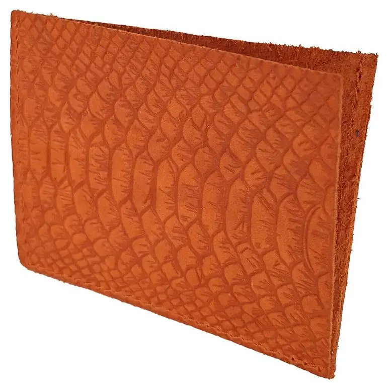 Картхолдер "Улыбка" из натуральной кожи, рыжий, тиснение "Питон"