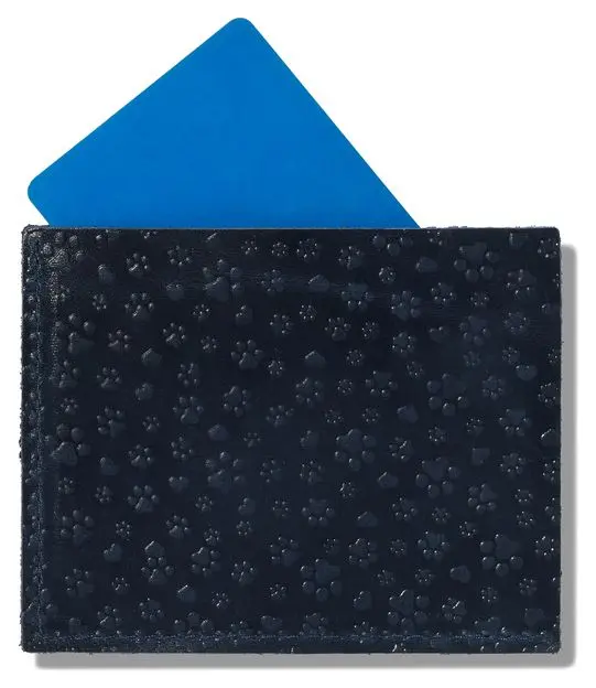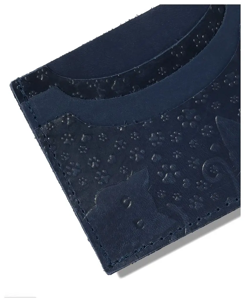 Картхолдер "Улыбка" из натуральной кожи, синий, тиснение "Котики"