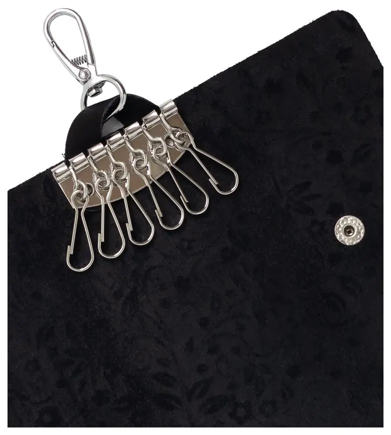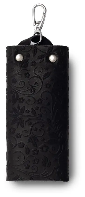 Ключница из натуральной кожи на кнопке, черная, тиснение "Флаверс"