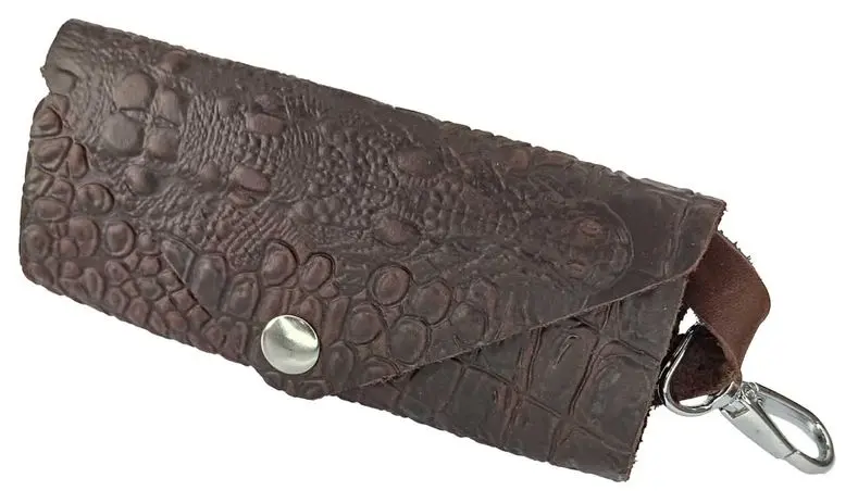 Ключница из натуральной кожи на кнопке, коричневая, тиснение "Данди"